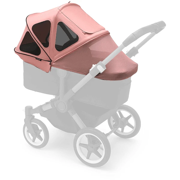 De duurzame stof is water- en olieafstotend en heeft een UV-beschermingsgraad van 50+ (behalve op de geïntegreerde ventilatieramen), terwijl het fijne gaasmateriaal een koel briesje binnenlaat. Voor een nog betere luchtstroom en gemakkelijke toegang tot uw kind, kunt u het venster met ritssluiting openen.